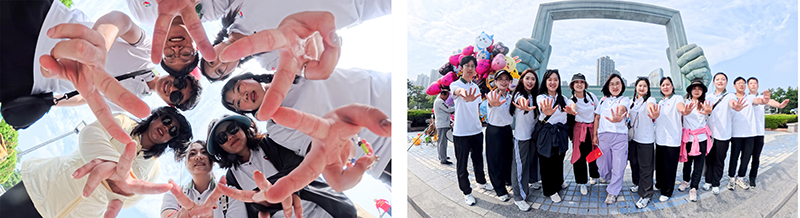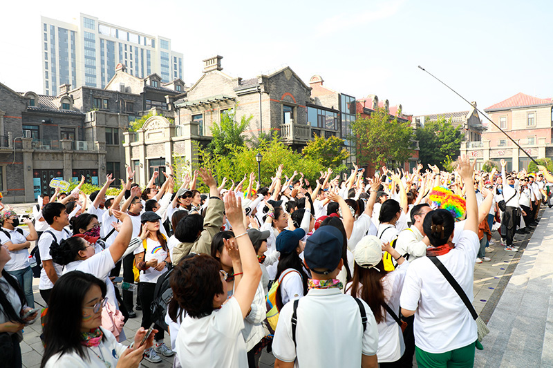 集合打卡,欢乐与笑声交织,气氛温馨愉快。