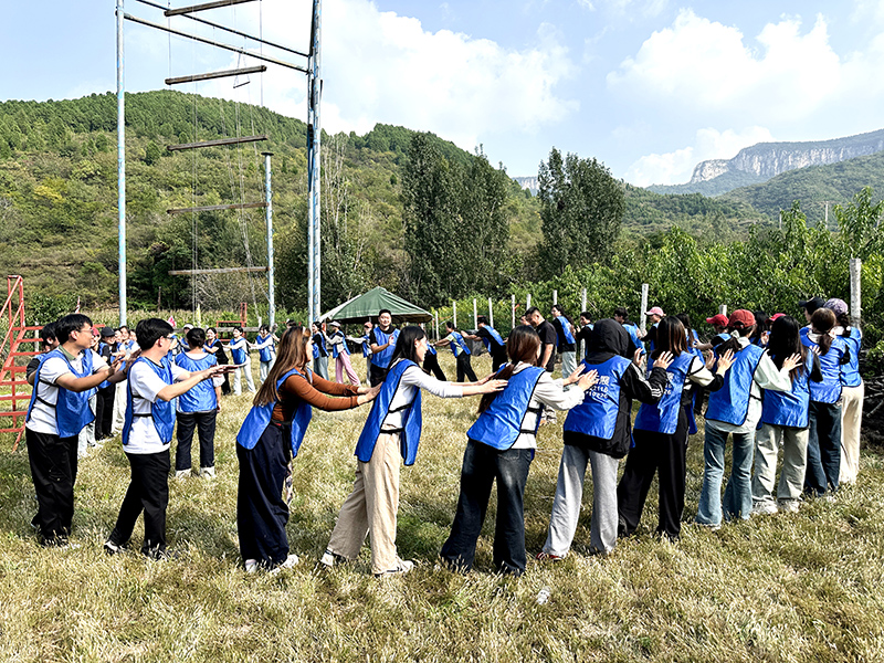 拓展游戏中默契配合,眼神交流间已读懂彼此,团队精神在此刻熠熠生辉。