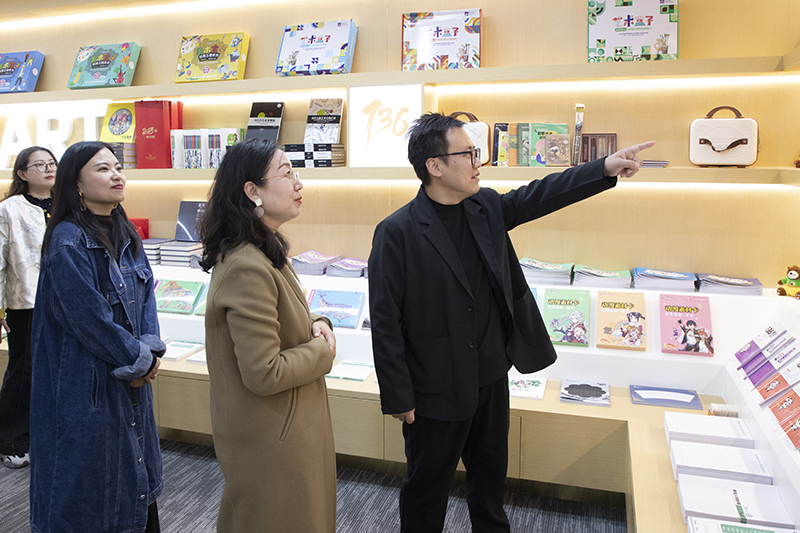 访谈之余,高登科老师兴致盎然地参观了我们的产品馆。从系统呈现希望美术教育发展脉络与教育理念的“希望历程馆”,到具体展现教学进阶的课程体系展示,高老师细致观摩,不时驻足交流。他对我们将抽象美育理念转化为具象、可感知的课程产品与教学成果表示赞赏。当看到将课程精华与创意素材融为一体的“课程礼盒”时,高老师表现出浓厚兴趣,认为这种形式让美育超越了课堂,真正融入了孩子的日常生活。此次参观不仅是一次成果检阅,更是一次双向的启发。高登科老师对我们在产品化、系统化方面的探索给予了高度评价,并且在美育的普适性与专业性结合方面做出了卓有成效的尝试。