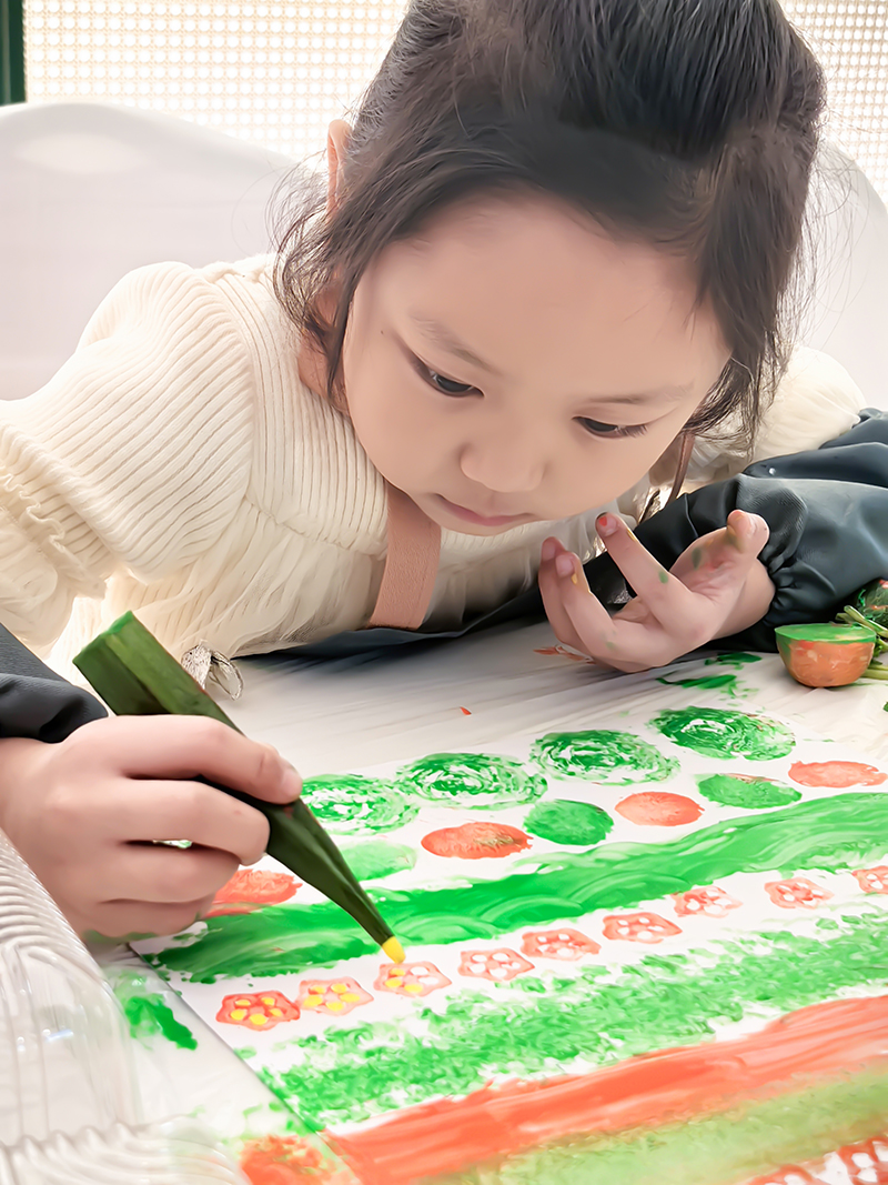 用双手触摸季节,用创意点亮自然。自然的每一片叶、每一颗菜,都藏着等待被唤醒的艺术密码。在这个充满浪漫与诗意的季节里,我们与孩子们一起跳出画纸的边界,用蔬菜拓印出斑斓肌理,用树叶拼贴出童话世界······趣味艺术形式,让观察力、想象力与动手能力在指尖共舞,把平凡的自然物,变成独一无二的童年创作。