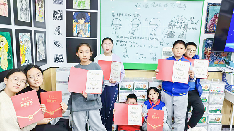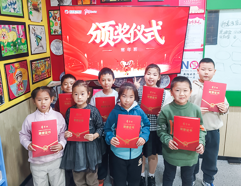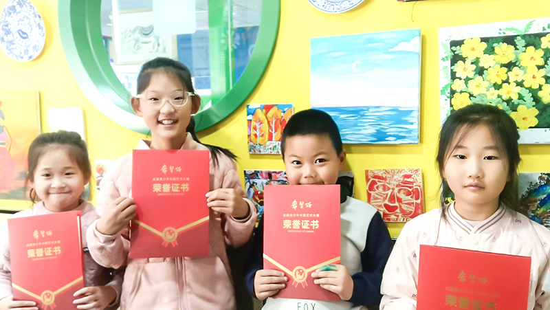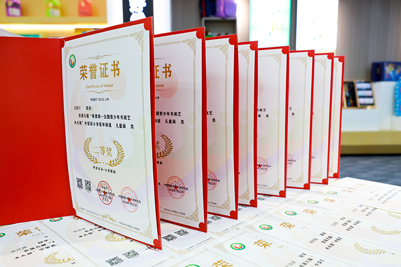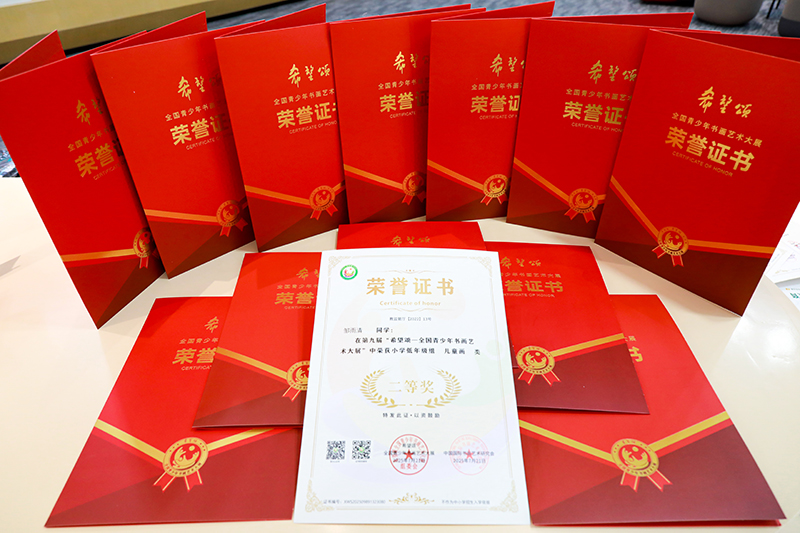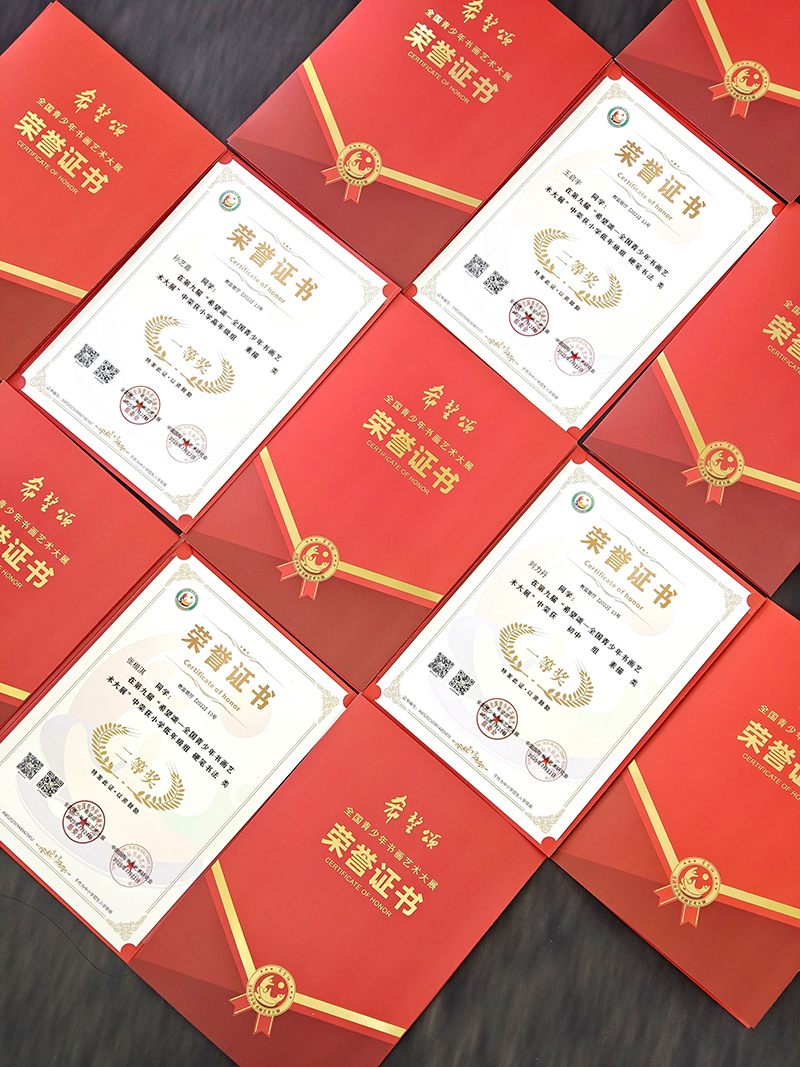 一张张红彤彤的荣誉证书,是孩子们用笔墨书写的成长答卷。不仅是艺术素养的官方认证,更是无数个周末伏案创作、反复修改的成果见证,每一笔都藏着对绘画的执着。