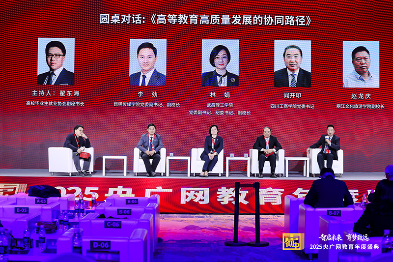 圆桌对话《高等教育高质量发展的协同路径》高校毕业生协会副秘书长翟东海先生对话昆明传媒学院党委副书记、副校长李劲先生,武昌理工学院党委副书记、纪委书记、副校长林娟女士,四川工商学院党委书记阎开印先生,丽江文化旅游学院副校长赵龙庆先生。