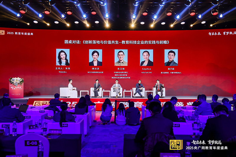 圆桌对话《创新落地与价值共生——教育科技企业的实践与前瞻》央广网主持人朱珠女士对话新东方素质教育总经理傅诗淇女士,中美联合培养双博士、国家公派交流学者、高途知名英语教育培训专家朱汉祺先生,HelloTalk CMO Sophia女士,壹次通教育、华睿考博创始人黄子诚先生。