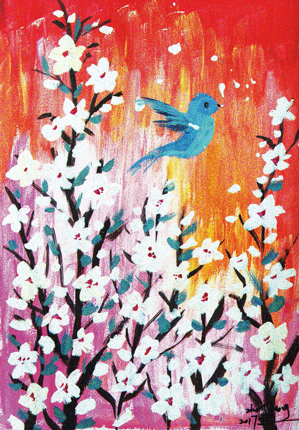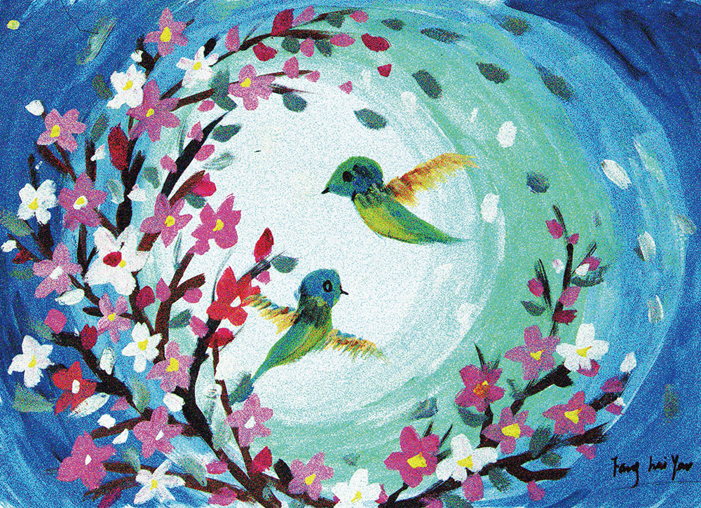 鸟语花香作为大自然中美的对象,历来是大艺术家们争相描绘的对象。通过本次课的学习,让学生掌握水粉的厚薄涂法,锻炼学生的控水控色能力,通过背景和花卉的对比,锻炼学生的色彩搭配能力和对比色的运用。学习了解花卉和鸟的生长结构,激发学生主动观察大自然意识以及热爱大自然的情感。