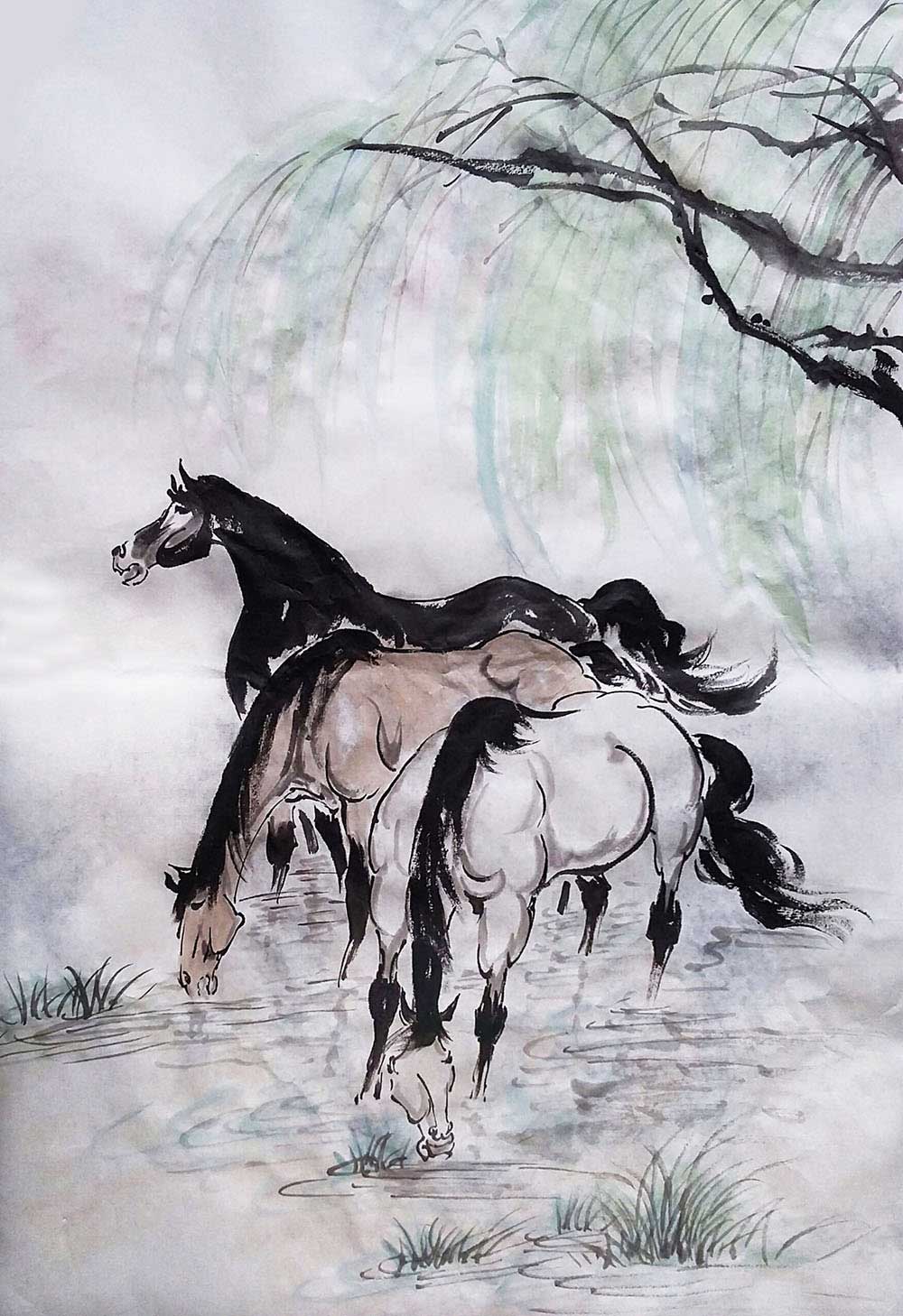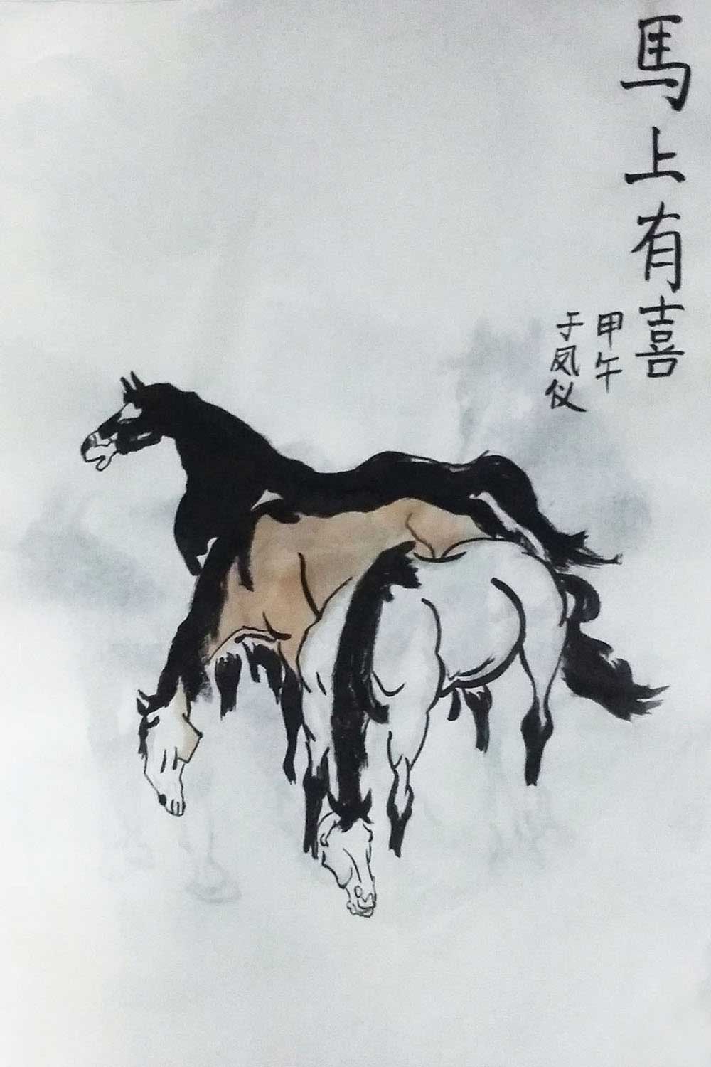 通过画马,学生们了解了马的生活习性和样貌特征,感受它健步如飞,刚劲有力的雄壮之美。学习了用水墨表现马,在造型中体会墨色的变化,提高观察、表现能力。通过欣赏、表现马,培养学生的综合学习能力和创造精神,激发学生热爱自然、保护动物的情感。