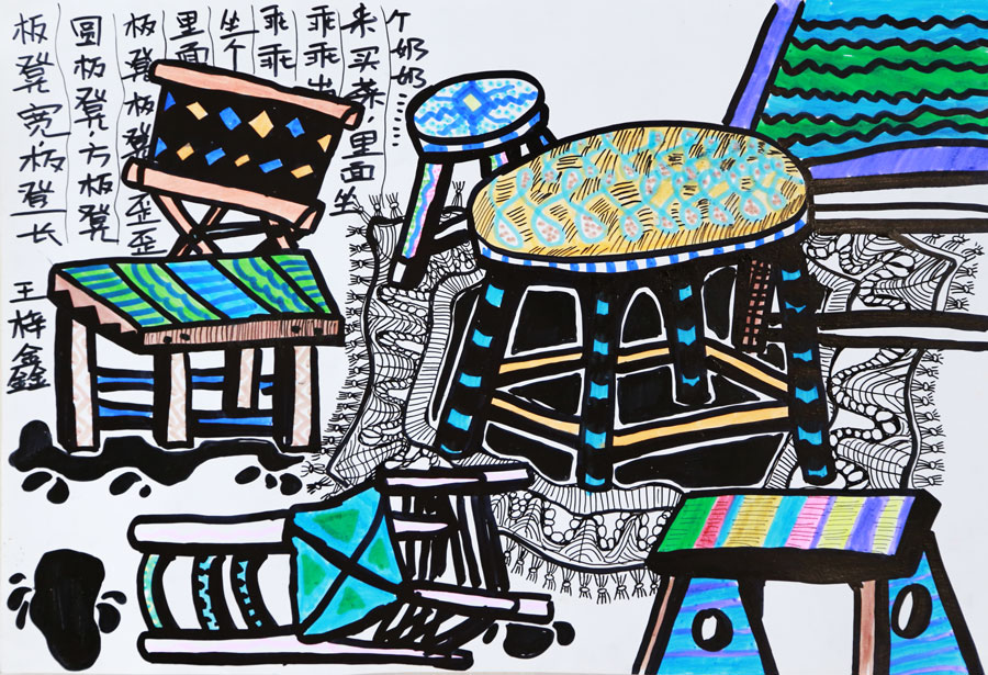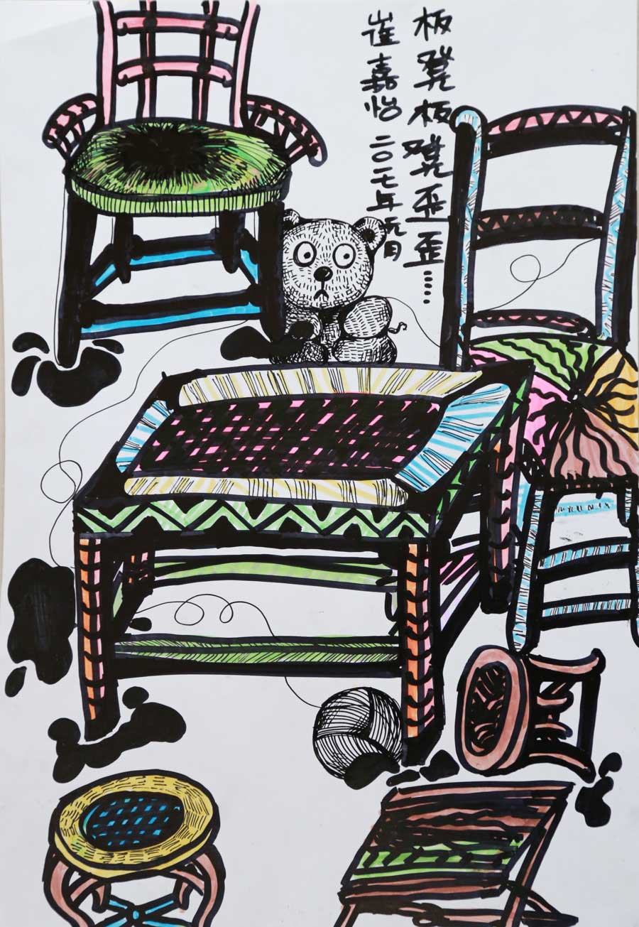 通过欣赏画家刻画的椅子的作品,学生们了解了椅子是静物画中经常出现的绘画对象,感受到绘画中静物有声的道理。学会了观察椅子的立体关系,并通过线描形式装饰画面。通过学习大师作品,也激发了学生的绘画热情。