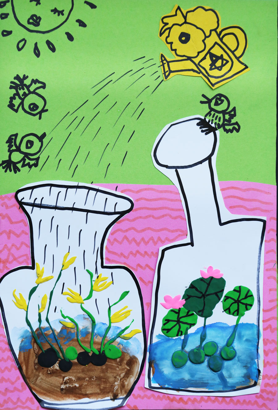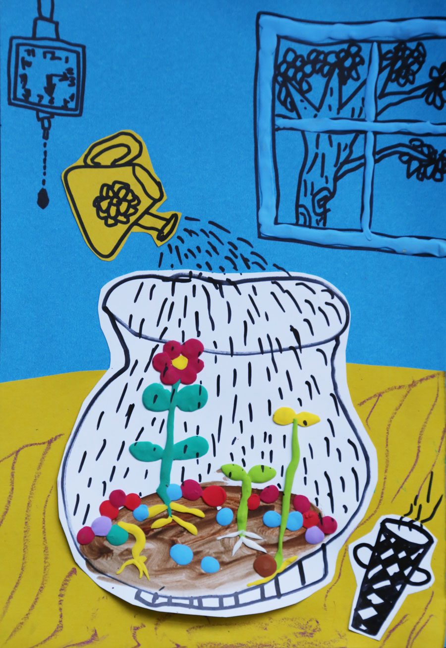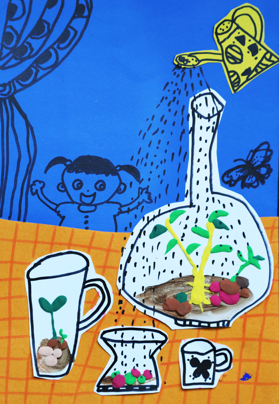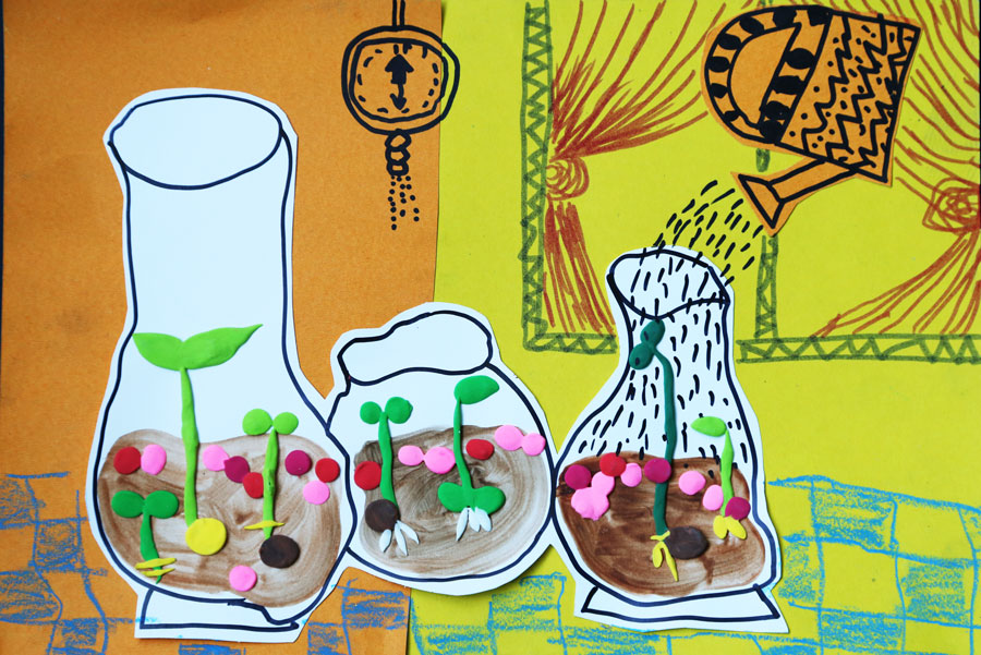 绘画与手工相结合的形式诠释植物生长过程