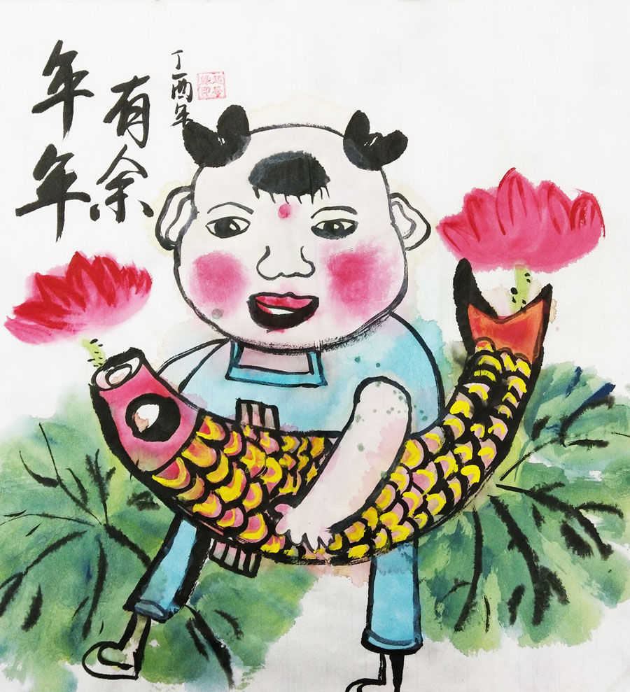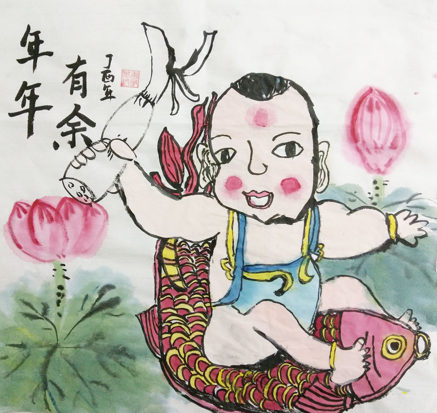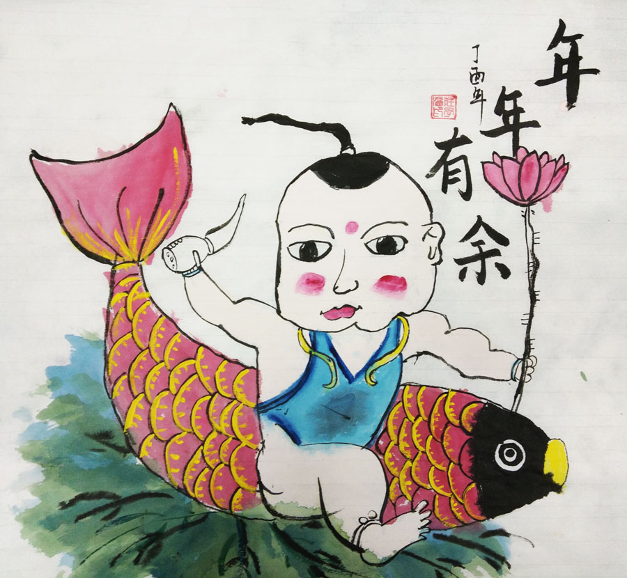 通过学习,小朋友们初步了解年画的定义与“莲年有余”的美好寓意。能够把握画面中年画娃娃的动态造型,运用勾线法与没骨法完成画面。同时也培养了学生对我国传统民俗文化的了解,增加了学生对我国传统文化的热爱。