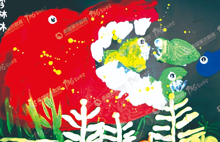 姓名:李林林 儿童创意美术作品:大鱼吃小鱼