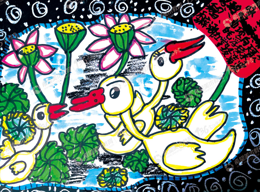 姓名:季梓涵-儿童创意美术作品:咏鹅
