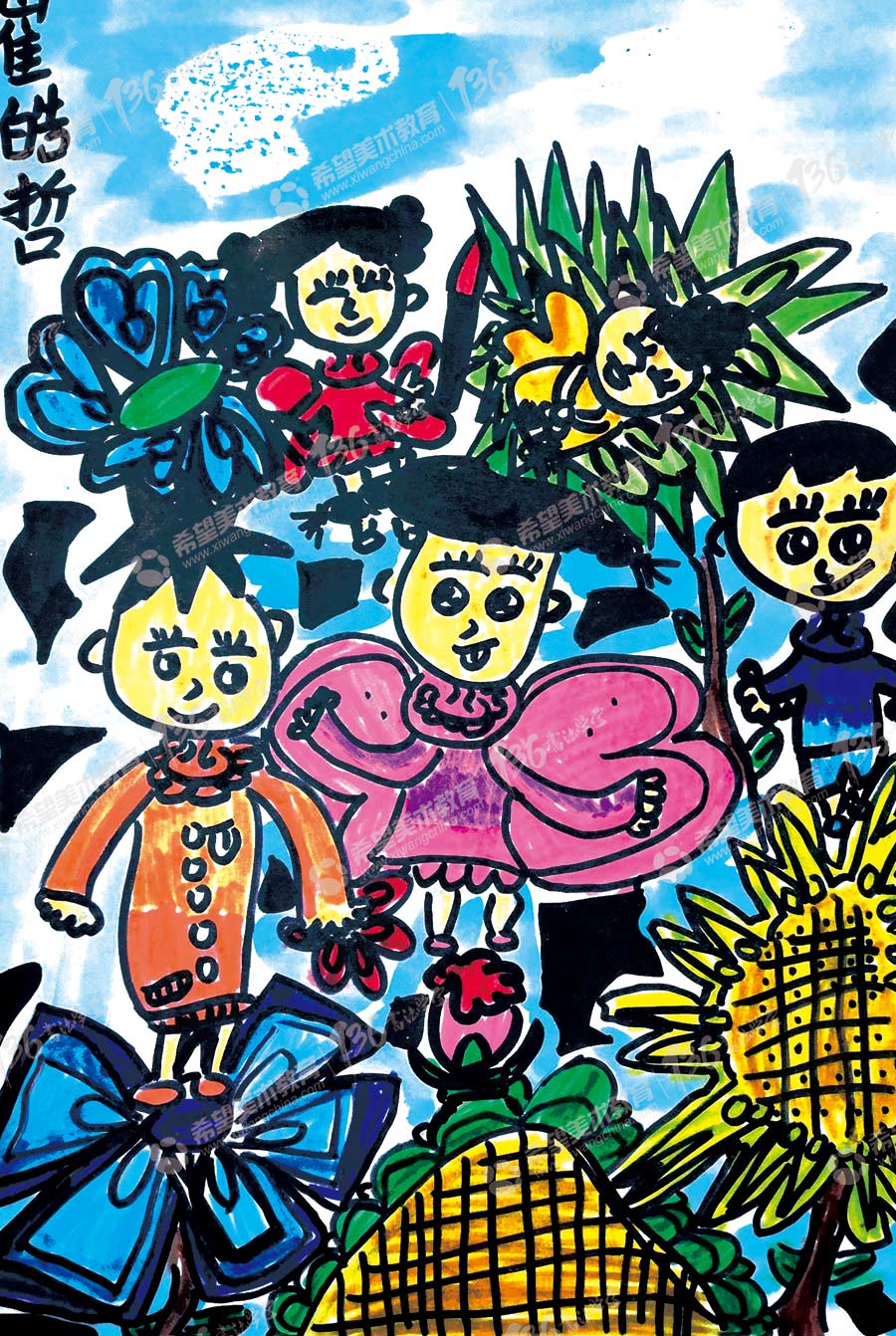 姓名:崔皓哲--儿童创意美术作品:花丛精灵