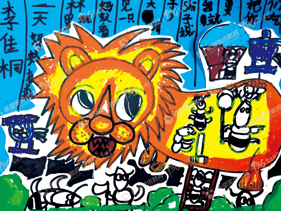 姓名:李佳桐--儿童创意美术作品:狮子和蚂蚁