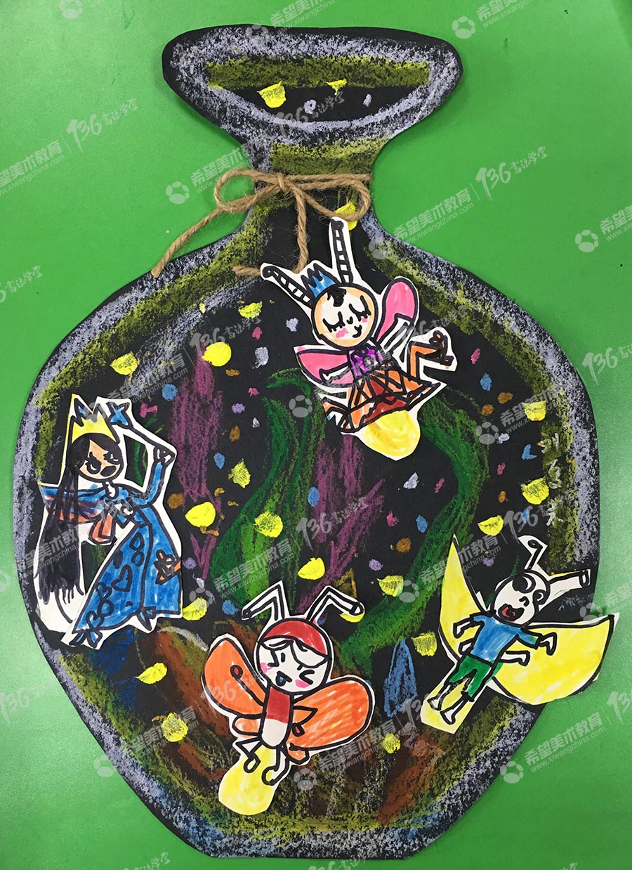 姓名:刘夏茉--儿童创意美术作品:夏日萤火虫