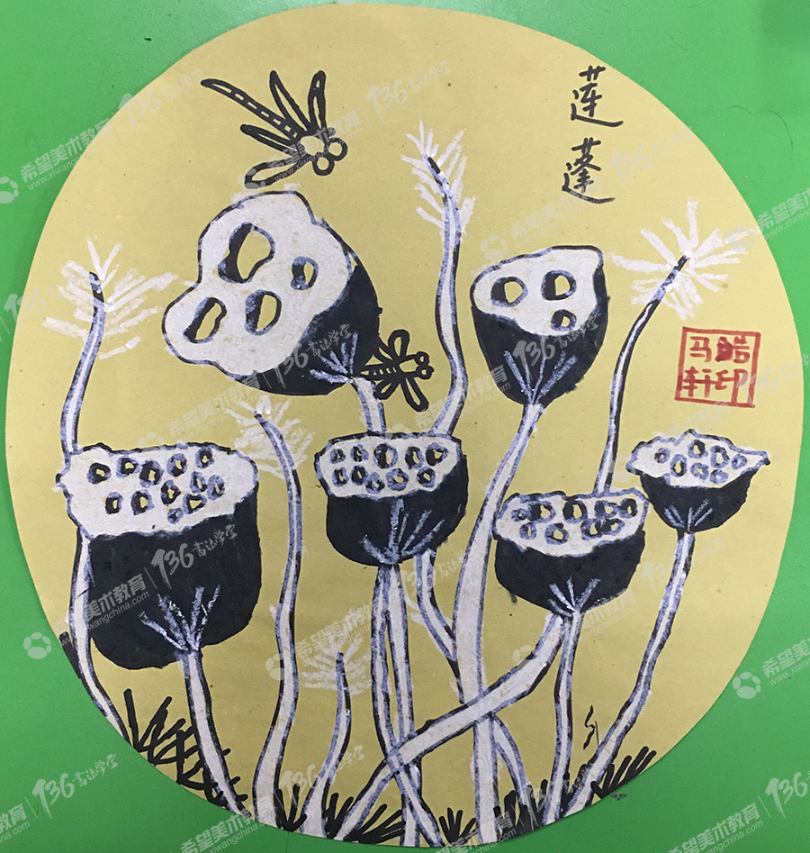 姓名:马浩轩--儿童创意美术作品:-莲蓬