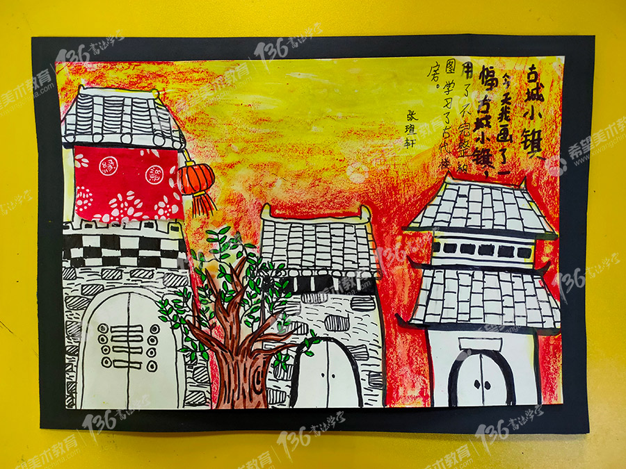 姓名:张瑄轩 儿童创意美术作品:古城小镇