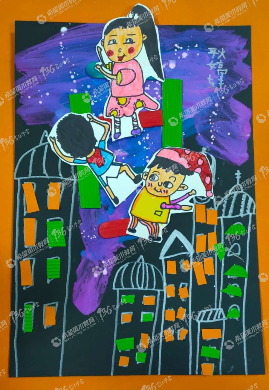 姓名:耿婷轩--儿童美术作品:摘月亮