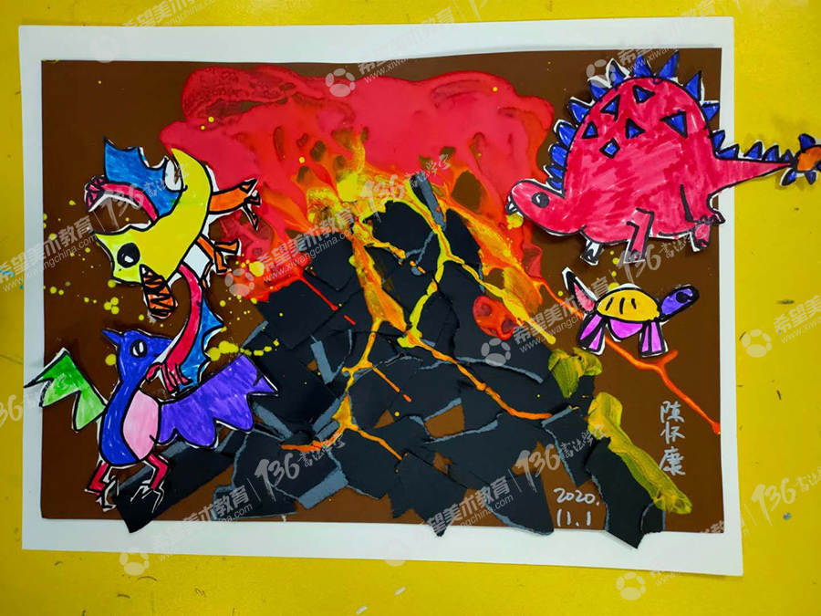 姓名:陈怀康--作品:恐龙与火山爆发