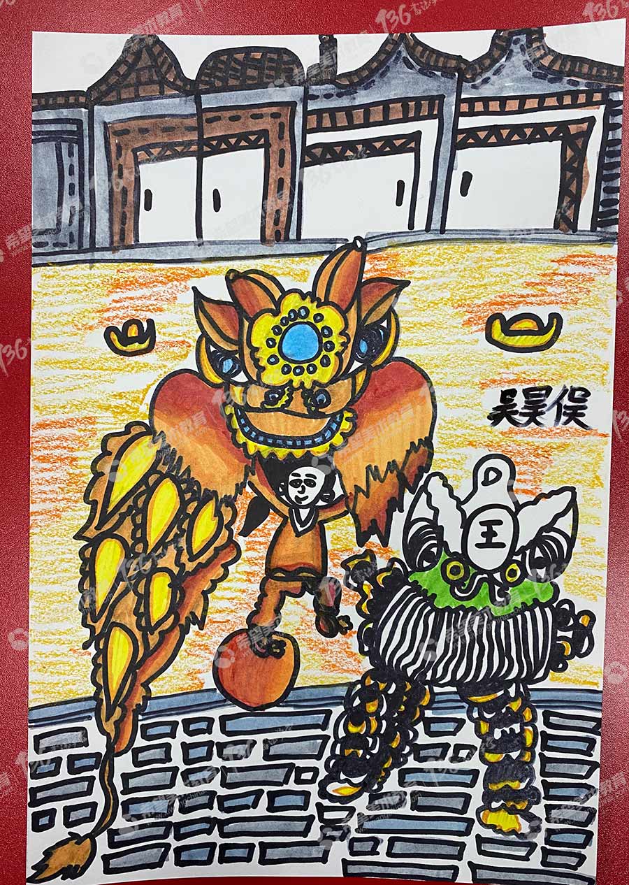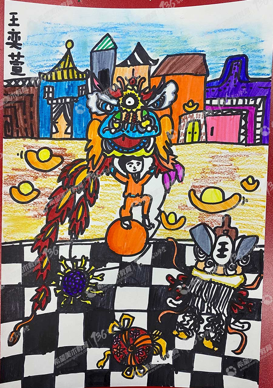 姓名:王奕萱--少儿美术作品:龙飞狮舞