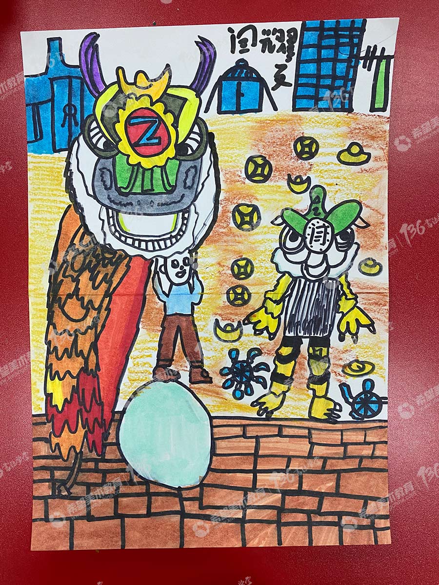 姓名:闫耀文-少儿美术作品:龙飞狮舞