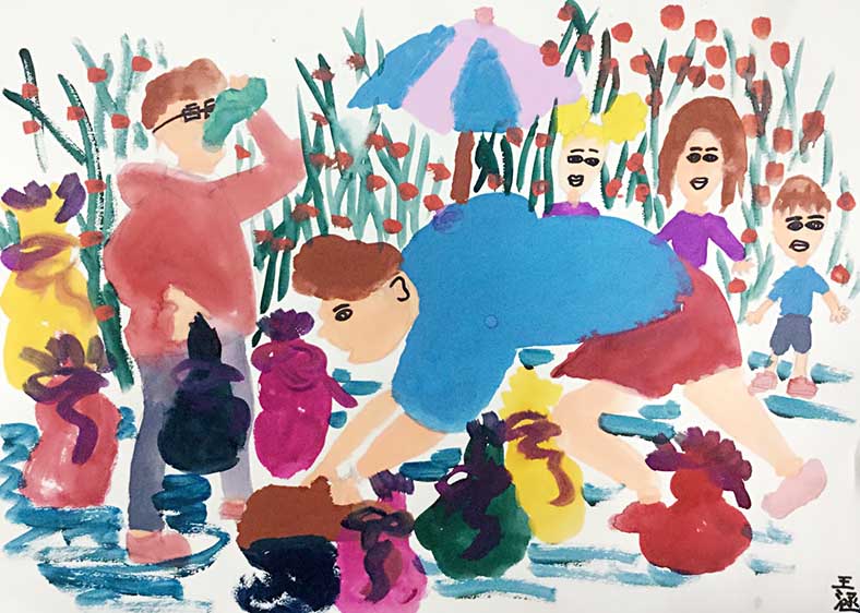 作品点评:这幅作品很耐看,生动形象的表现出人们游戏的场景,人物的刻画很到位、很精彩,动作抓取的也比较到位,放松的笔触更增添了画面的趣味。