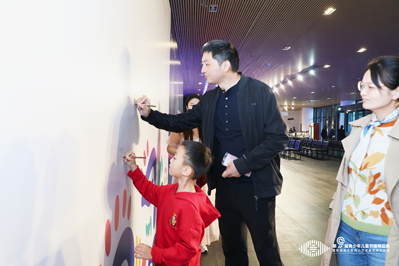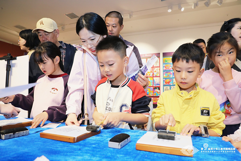 在画展现场的拓印区,家长与孩子们尽情体验,拓印出属于两代人的艺术密码。