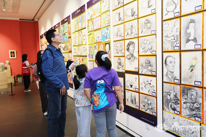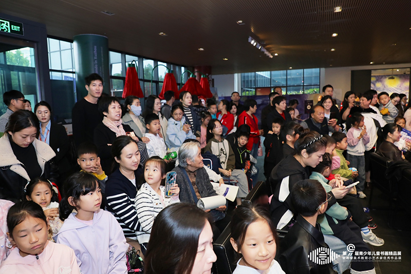 画展现场,嘉宾们驻足画前,在童真笔触间感受少儿艺术蓬勃的生命力。