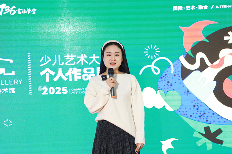 希望美术教育潍坊市区教学总监李媛媛女士致开幕辞。相信今天的个展会成为孩子们最难忘的回忆,也愿这次画展成为孩子们艺术旅程中一个闪亮的路标。愿孩子们永远珍视笔下这份独特的美好,保持探索的热情,愿艺术与希望,永远与你们同行。