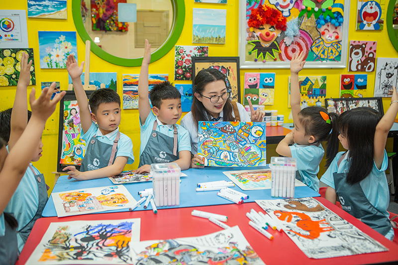 在希望美术教育,我们不仅是教授画画,更是自由的守护者。主题引导,而非范本临摹:我们提供如“外星来客”或“会飞的房子”这样的开放式主题,激发想象,但绝不提供“标准画法”让孩子模仿。我们相信,每个孩子脑海中的外星人和神奇房屋都独一无二。过程重于结果,欣赏每一笔:我们关注孩子创作时的专注、尝试和讲述。比起一幅“完美”的作品,我们更珍视画作背后的故事和思考。老师的角色是“引导者”和“粉丝”,会问“你画里的这个故事真有趣,能和我多说说吗?”,而不是“这里应该涂什么颜色?”建立“无评判”的安全环境: 在我们的课堂里,没有“对错”,只有“不同”。我们鼓励孩子分享和解读自己的作品,彼此欣赏天马行空的创意,从而建立起强大的创作自信。